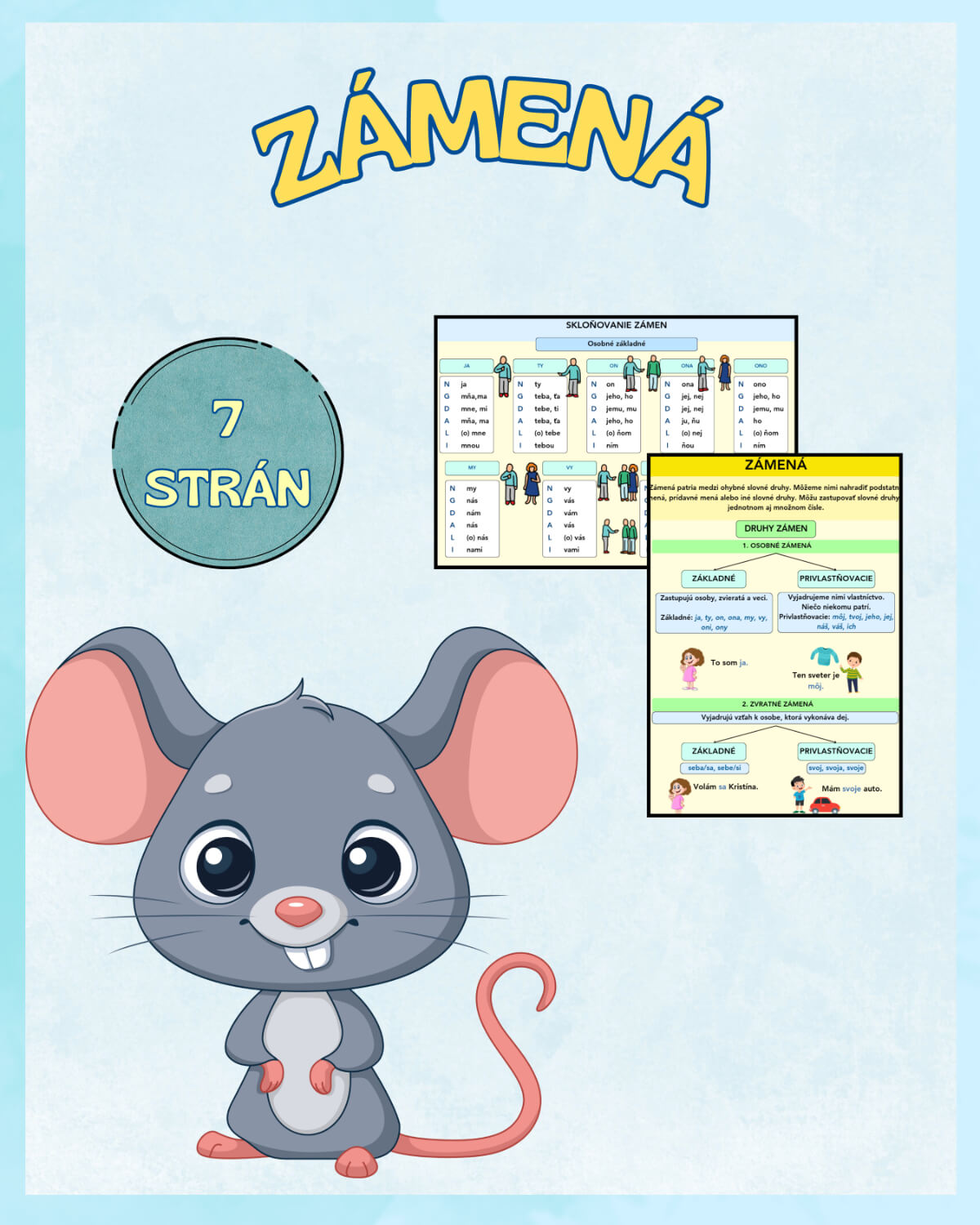 Delenie zámen, prehľad skloňovania, používanie zvratných zámen, praktické príklady.